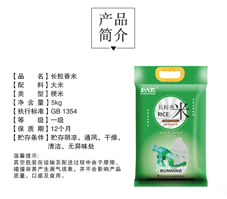 大荒长粒香米5kg/袋 东北大米新米黑龙江五常磨米稻花香米(20斤装)