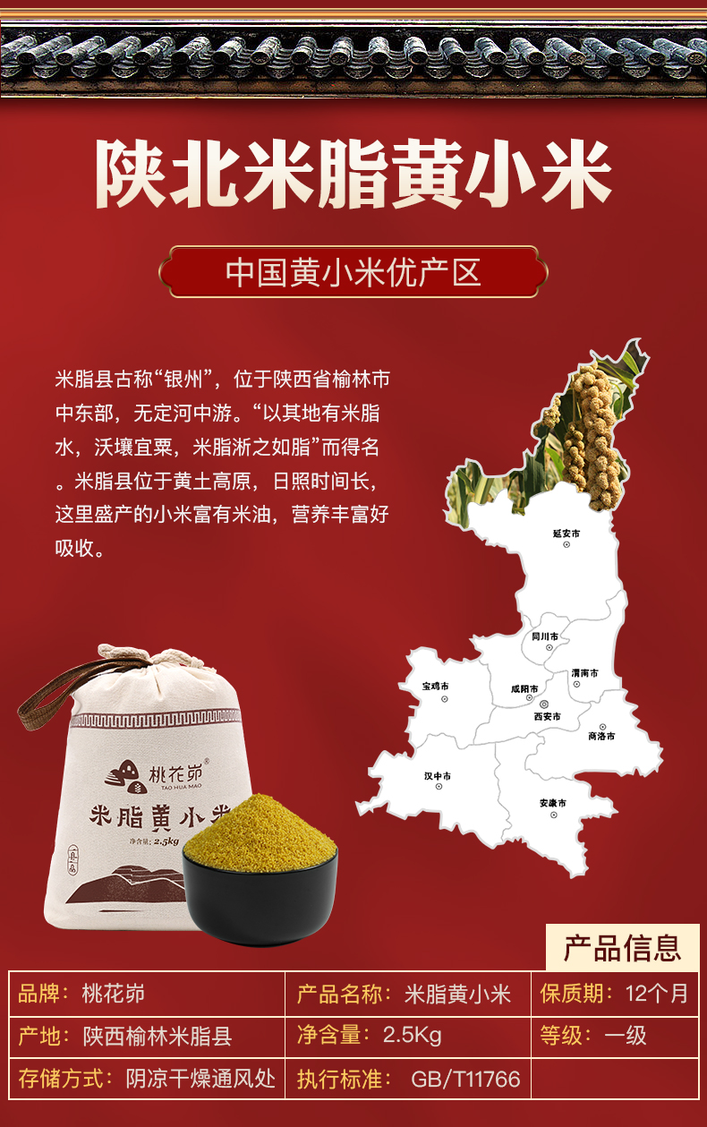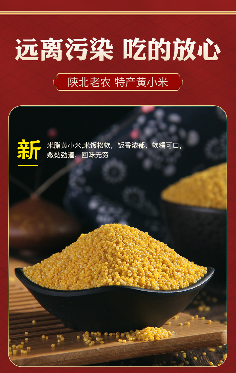 米脂黄小米 5斤杂粮新米 陕北小黄米 农家粗粮杂粮粥米 2500g/袋-2.5kg